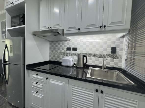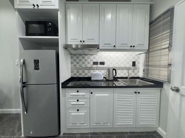 This 1st-floor studio apartment offers 41 sqm of comfortable living space in the well-established Baan Suan Lalana residential community. The unit has been fully refurbished and comes fully furnished, featuring a European-style kitchen, a modern bathroom, and a private balcony with garden view, creating a peaceful and comfortable living environment.